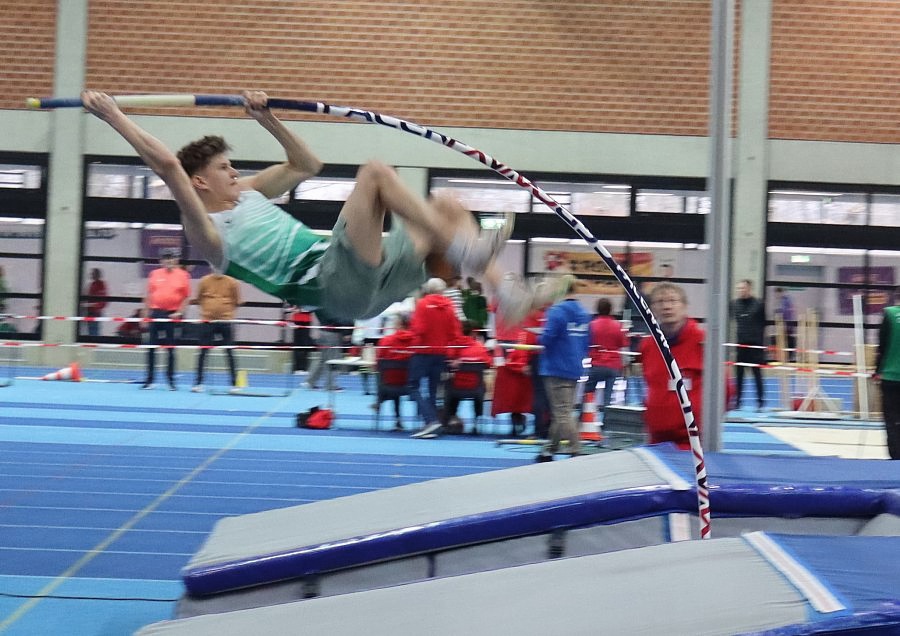 Zuvor hatte Vereinskollege Lasse Zumsande im Hochsprung nach in dieser Saison schon geschafften 2,01 mit übersprungen 1,98 m sowohl Gold als auch erneut die DM-Norm eingetütet. Gold Nr. 6 ging etwas überraschend an Stabhochspringer Julius Casjens (LG Papenburg-Aschendorf) der sich von 3,80 auf 3,95 m steigerte und sich gegen die stärker eingeschätzte Konkurrenz behauptete. Die zweite Medaille für den SV Sigiltra Sögel erkämpfte sich Karl-Christian Schüttert, der über 400m der U20 in sehr guten 51,57 Sek. dicht an seine Freiluft-Bestleistung heranlief.